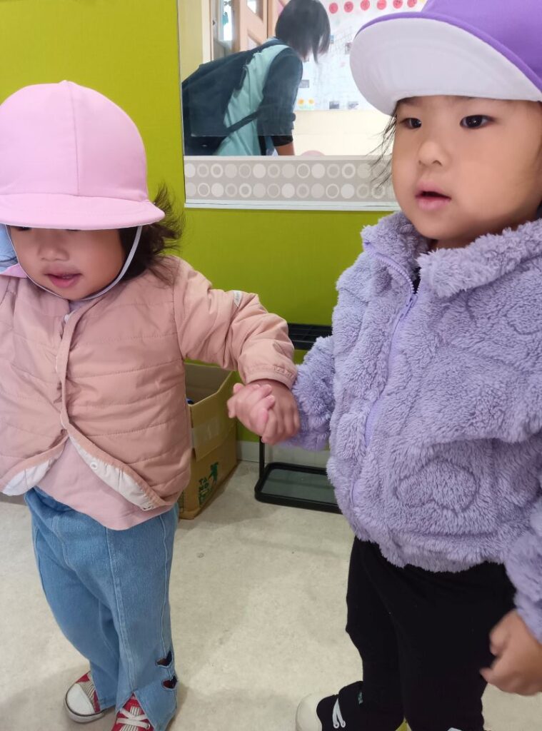 「ギュっ。」わたしたち、手つなぎもかんぺきです!