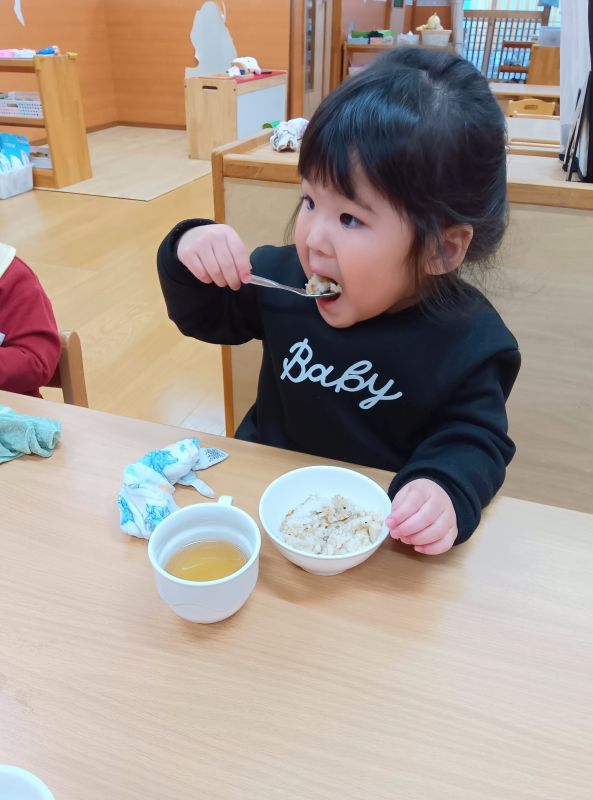 食育 きのこ③ 「きのこご飯おいしいーーー。」