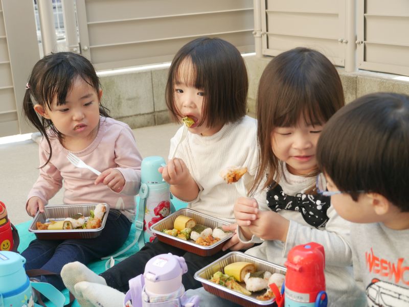 桜ヶ丘はないろ保育園 2025/12/5 11月の子どもたち 使い方合ってる? さあいくよ!いっしょにあそぼ~ カレー作り。ねこのて上手でしょ おさんぽバック作りに真剣 お外でおやつ。きもちいいね 一心不乱にどんぐり拾い お外でお弁当。おいしかった~ おべんとおべんとうれしいな 電車に乗ってやまと公園に行ったよ まてまて~!にげろ~(1歳児のおにごっこ)