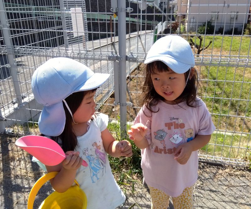 桜ヶ丘はないろ保育園 2025/10/9 9月の子どもたち ばあ~!! みんなでイ~のまねっこ どっちが長い? ボクの大好きな先生… おだんごあげるよ 見てごらん!きれいな石あったよ このお花どうかしら 手伝う?登れる?? キャベツって大きくておも~い! 遊び方覚えたよ