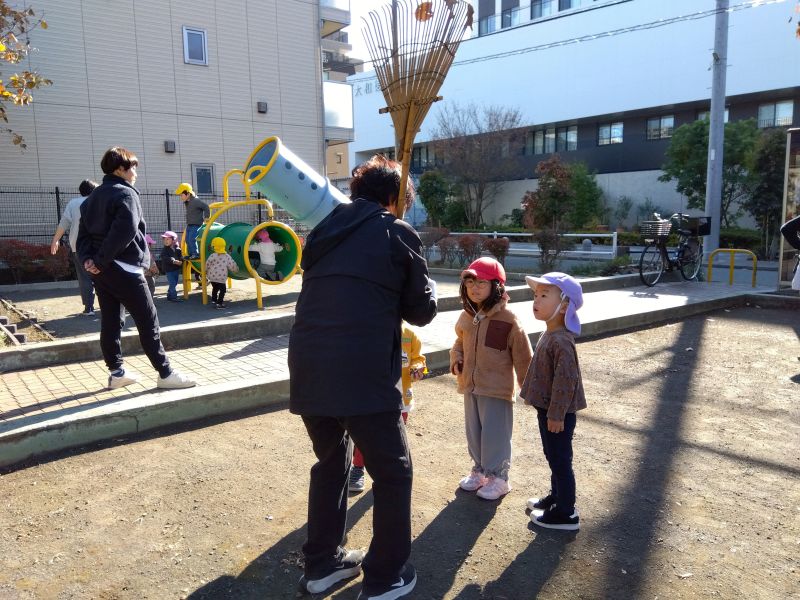 大和はないろ保育園 2025/12/11 11月の子どもたち 小学校見学にいきました。 大和市アートフェスティバルの作品です。年長組全員で制作しました。 しっかりつかまって! 何度もチャレンジして大きなシャボン玉を作りました。 「だるまさんが、ころんだ!」 葉っぱのお掃除のお手伝いをしました。 感触遊び:テーマは乾物でした。 ごっこ遊び:お店屋さん 避難訓練:広域避難場所の大和スポーツセンターまで避難しました。 落ち葉のじゅうたんの上で気持ちよさそうです。